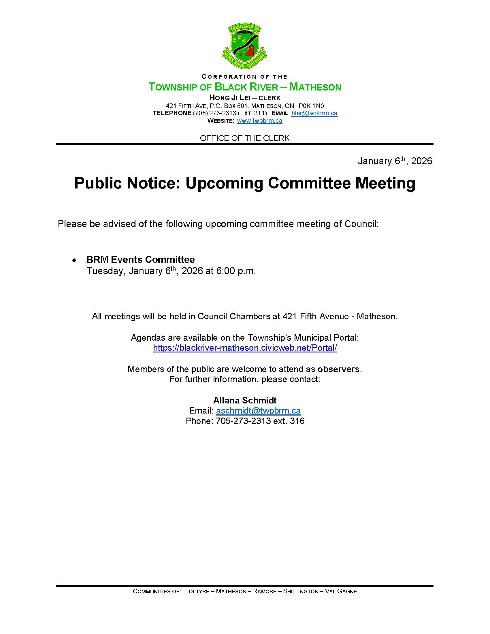 Notice of Committee Meeting - January 2026 - BRM Events Committee
