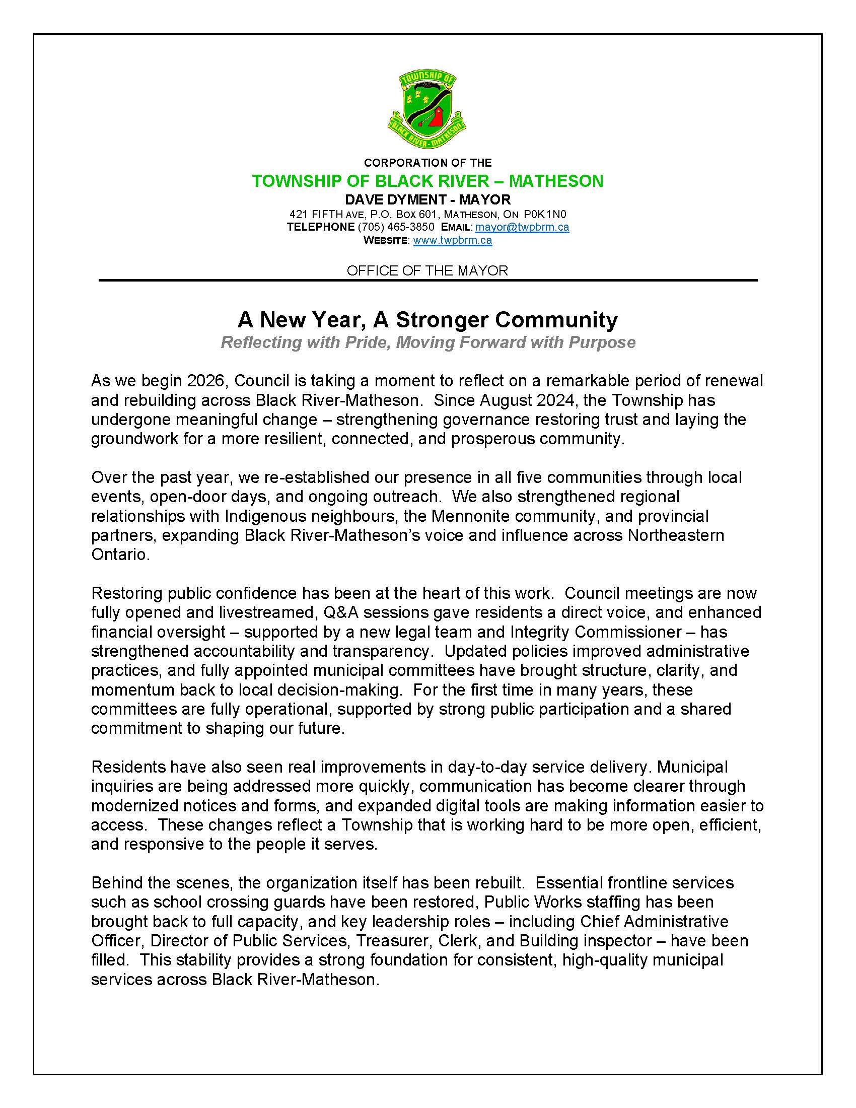Public NOTICE - Office of the Mayor - Good News - 2025 Reflection